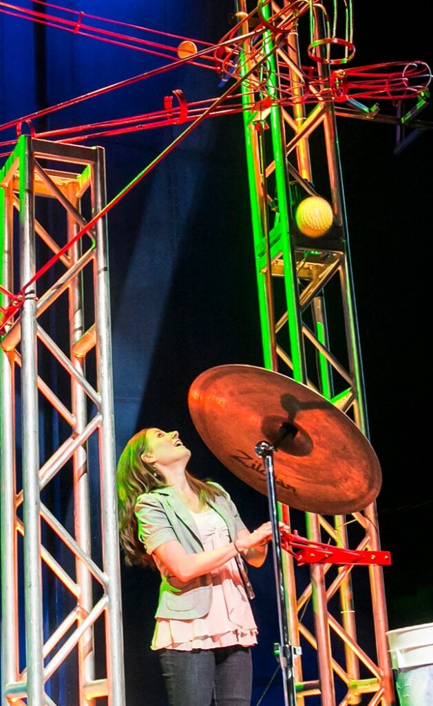 Delivered a compelling, interactive story of collaboration to the stage via a giant, working Rube Goldberg machine inspired by the OkGo viral music video This Too Shall Pass.